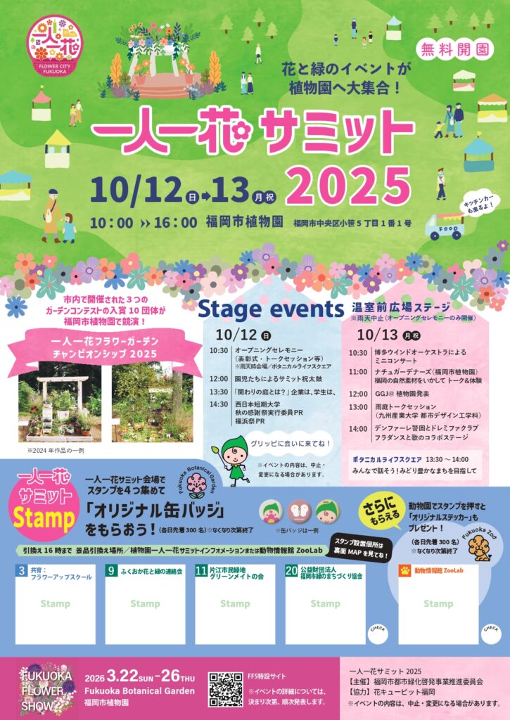 一人一花運動に取り組む活動団体・市民・企業等が一堂に集う、花と緑のイベント「一人一花サミット」✿福岡市植物園で10月12日(日)・13日(月・祝)に両日無料開園で開催します!
